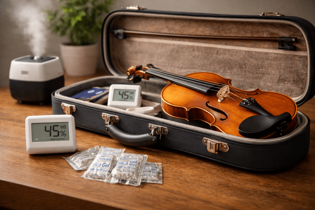 Humidity control is one of the simplest and most cost-effective ways to protect your violin’s sound and structure. With basic monitoring and a few well-chosen tools, adult violinists can avoid many common maintenance problems before they start.