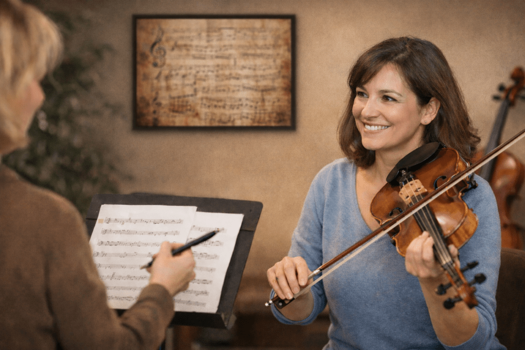 If you’re unsure whether in-person or online lessons fit you best, Online vs. In-Person Violin Lessons for Adults walks you through the strengths and tradeoffs of each so you can choose what truly fits your life.